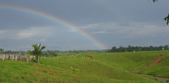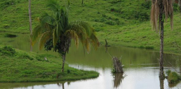 Währenddessen erkundeten wir ein wenig die Umgebung. Von der Fazenda aus sieht man in jede Richtung nur hügeliges Grasland, auf dem die Erosion schon tiefe Gräben gerissen hat. Alles nur Weidefläche für ein paar Tiere. Und so rannten wir die Hügel hoch und runter, es ist schon unglaublich wie viele Bäume auf dieser Fläche früher mal gestanden haben müssen. Und die Wege und Wiesen waren von bis zu 1 Meter tiefen Erosionsgräben durchzogen… Zerstörung des Regenwaldes, hier haben wir es! Der Bürgermeister hat beim Rodeofestival gesagt, dass in seiner Amtsperiode die Anzahl der Rinder in Envira von 8.000 auf 24.000 Tiere ausgebaut wurde. Diese großen - aber fast unbenutzen, wir haben nur ein paar Schafe gesehen - Weideflächen sind wohl der Preis dafür.